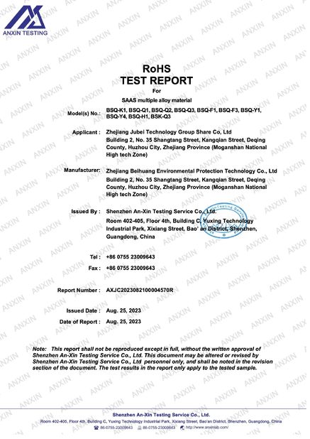 استاندارد:REACH Certificate عدد:AXJC2023082100004570H تاریخ صدور:2023-08-05 صادر شده توسط:Shenzhen An-xin Testing Service C., Ltd. |